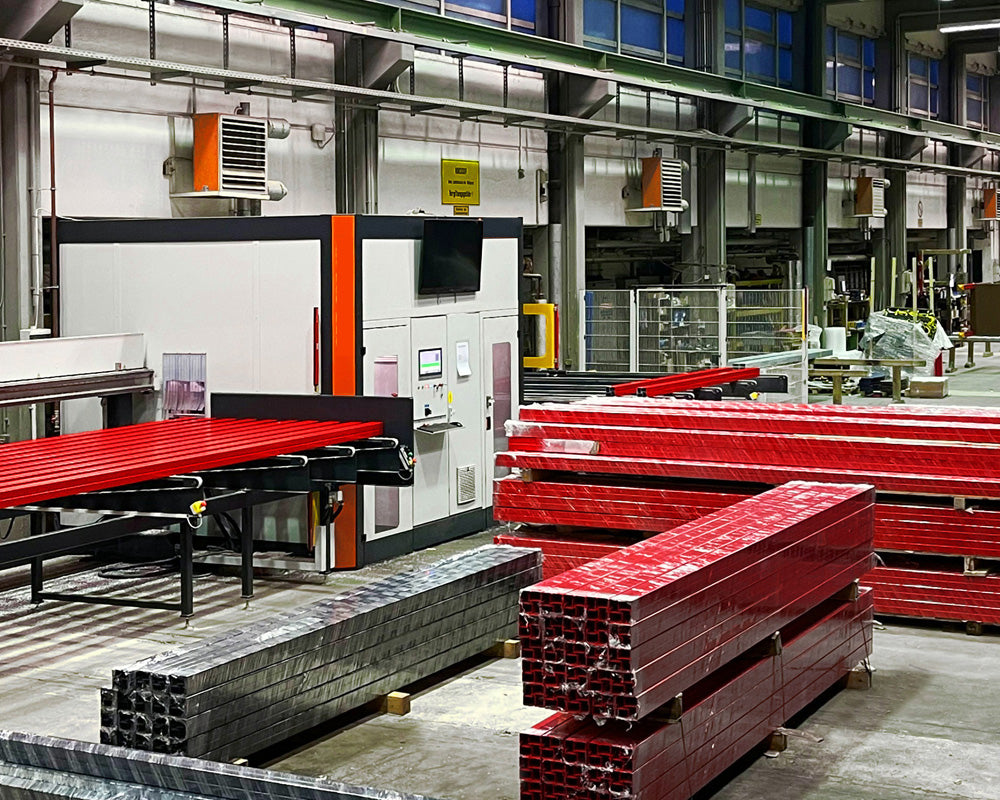 Für die Bearbeitung unserer Stahlprofile nutzen wir ein Stabbearbeitungszentrum, um Profile präzise und wiederholgenau vorzubereiten. Dazu zählen Quadratrohre wie 10 x 10 cm sowie Rundprofile. Je nach Bauteil werden Zuschnitte, Bohrungen, Ausklinkungen und weitere Bearbeitungen exakt nach Zeichnung umgesetzt, sodass die Profile passgenau für die Montage bereitstehen.