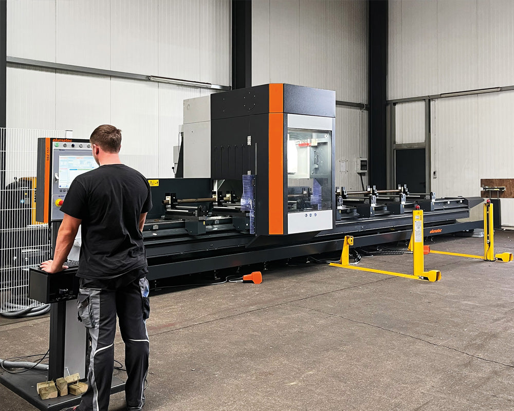 Für die Bearbeitung unserer Aluminiumprofile setzen wir ein Stabbearbeitungszentrum ein. Damit werden Profile präzise und wiederholgenau bearbeitet, vom Zuschnitt über Bohrungen und Fräsungen bis hin zu Ausklinkungen und Montagevorbereitungen. Die Bearbeitung erfolgt CNC gesteuert nach definierten Programmen, sodass Maßhaltigkeit und Passgenauigkeit auch bei Serienfertigung konstant hoch bleiben.